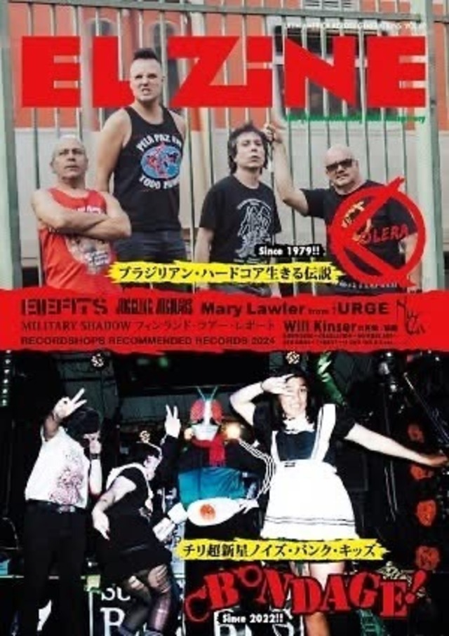 A4/表紙カラー・本文モノクロ/表紙含め全50ページ [内容] ●THE LAST SURVIVORS & SKITKLASSロサンゼルス・ツアー・レポート (2025年12月に敢行された、日本を代表するRaw Punkバンド THE LAST SURVIVORSと、正体不明の覆面バンドSKITKLASSによる ロサンゼルス・ツアー・レポートby Michiaki/THE LAST SURVIVORS) ●BESTHOVEN (4月に来日する永遠の独りD-Beat Raw Punks、ブラジルのBESTHOVENの 首謀者であるFofao Discrustへのロング・インタヴュー) ●NAO (ex.MUROや現VITAMIN Xなどのメンバーらによるドイツの D-Beat Raw Punkマッドネス、NAOのヴォーカルMorganaへのインタヴュー) ●ANTI-CORPOS (4月に来日するブラジル出身、現在はドイツで活動するクィア・フェミニスト・ ハードコア・バンドANTI-CORPOSへのインタヴュー) ●FUCK IT (BESTHOVENと共に来日ツアーを行なうポルトガル産 ハードコア・パンク・バンドFUCK ITへのインタヴュー) ●ALPHA ANTICHRIST (中国の極東ヤクザ・メタル・パンク・バンド、ALPHA ANTICHRISTへの インタヴューby Tetsuya/MILITARY SHADOW) ●TIENE UN ARMA! + YEAR OF THE DEAD BIRD (2025年の来日も記憶に新しいHONG KONG FUCK YOUのメンバーらによる 2バンド、TIENE UN ARMA!とYEAR OF THE DEAD BIRD[両バンドとも4月に 来日予定]へのインタヴューbyローラ/LRPRSNTS) ●MIDWESTLUST (3月にDAGGER WOUNDやVOX YOMIと共に来日する、 シカゴのハードコア・バンドMIDWESTLUSTへのインタヴュー) ●DAGGER WOUND (ロサンゼルスのハーシュ・ノイズ・プロジェクト、DAGGER WOUNDへのインタヴュー) ●VOX YOMI (サンタクルーズのドゥーム・メタル・バンド、VOX YOMIへのインタヴュー) ●VOX POPULI - EL ZINE出張編 (津山のSKIZOPHRENIA/VOX POPULIのyu!による新連載コラム第6回目!) ●Android 0 Command (OVERTHROW RECORDSの森下 篤による新連載コラム第5回目!) ●ConnorのUKパンク通信 (イギリスのパンク・レーベルPRIVATE SCANDAL PRODUCTIONSの Connorによる新連載コラム第7回目!) ●LASHING SPEED DEMONS:KLAUS DINGER (NEU!やLA DUSSELDORFなどの活動で知られる クラウス・ディンガーのバイオグラフィby大越よしはる) ●Anti-Art Book Fair (アートブックの書評by Yoshi Yubai) ●Incredibly Strange Photography (vol.32にてインタヴューを掲載した、広島県福山市出身の写真家Yoshi Yubaiによる写真連載) ●Umea Punk City (ex.AC4~ex.ACID BLOODのKarlによる、スウェーデンUmeaの現地情報コラム) ●PUNK GIGS!! (ポーランドのパンク・バンドTRAUMEやINCIDENTなどでも活動するパンク・フォトグラファー、 PiotrによるアメリカのHARAMのライヴ・フォト・レポート)
