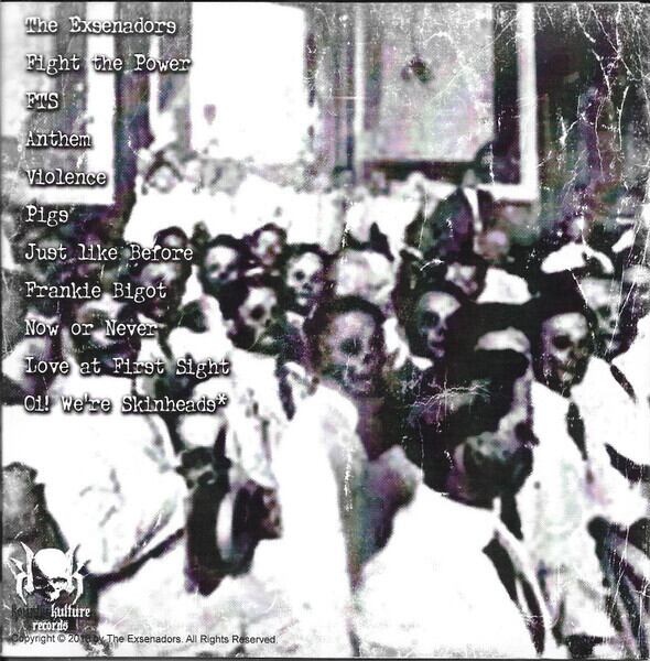 フィリピンのOi!/SKINHEADバンド「THE EXSENADORS」(エクセナダーズ)2013年リリースの11曲入り1stアルバムがCDRでリリース!彼らの10年以上のキャリアの集大成となるこの作品、UK Oi!のCombat 84を今日的に解釈したかのドライブ感溢れる激シブOi!サウンドをフルに聞かせてくれます。US Oi!のANTI HEROSとの共通点も感じられる、聴きやすい仕上がりです。 マニラPUNKシーンにて毎週末のように精力的な活動を行なっている彼ら、2013年末リリースの「SKINHEAD! IT'S AN ASIAN LEAGUE Vol.2」(BRONZE FIST RECORDS)にも参加、ノリにノッています!薄型見開き紙ジャケット仕様。なお、歌詞カードの周囲が焦げていますが、ジャケット封入作業中にロウソクが倒れて何十枚かの周囲が燃えてしまったので、どうせなら、と全部の歌詞カードの周囲を焦がしたそうです(笑)。