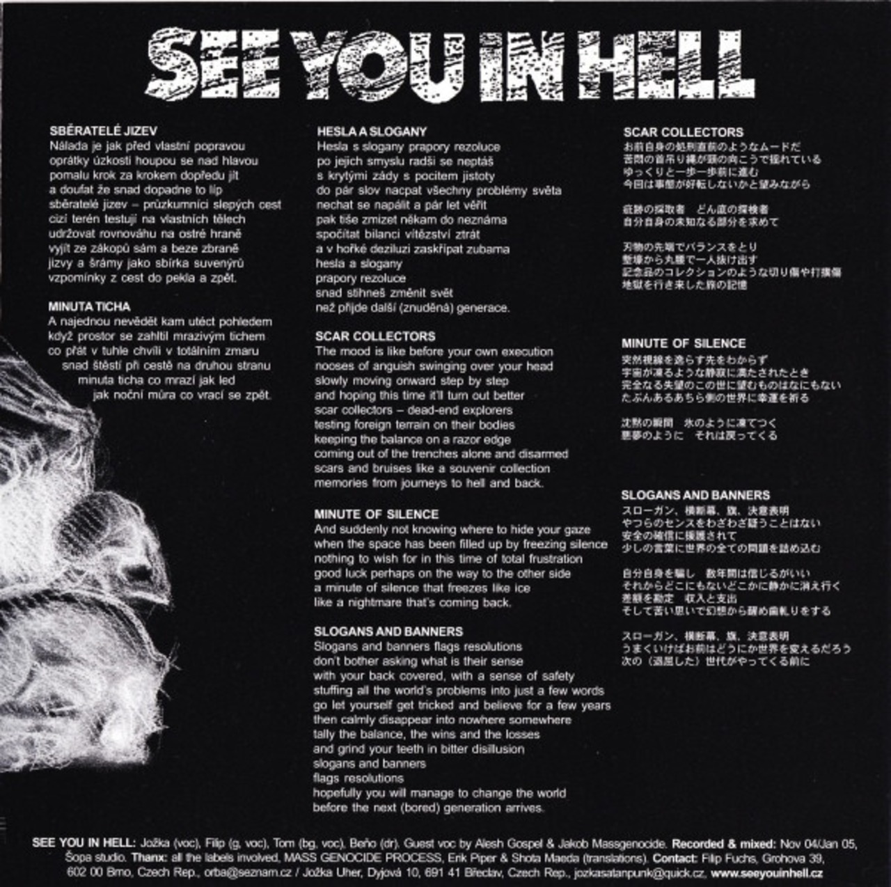 Mass Genocie Processは2008年に解散していますが、1999年結成以来、メンバーの不慮の死を乗り越えて今も活動する『See You In Hell』のUK~EUROハードコアの影響を受けながらJAPANESEハードコアの知見もある彼らのサウンドは一聴の価値ありです!日本のTOO CIRCLEも共同リリースで、両バンド共に日本語訳詞もついています。
