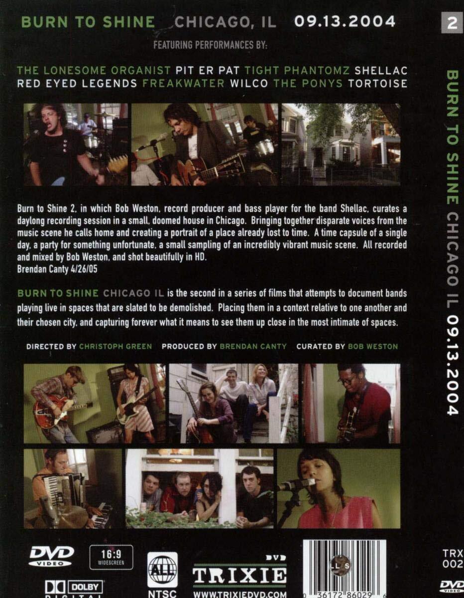 FugaziのBrendan Cantyがプロデュース、フィルムメイカーChristoph GreenがディレクターをつとめるDVDシリーズ『Burn To Shine』の第2弾!!SHELLAC、TORTOISE、WILCO、PIT ER PAT、THE PONYS、FREAKWATERなど、出演全アーティストが一軒家のリヴィングルームの中で各々撮影されている、ホーム・ライヴレコーディング!